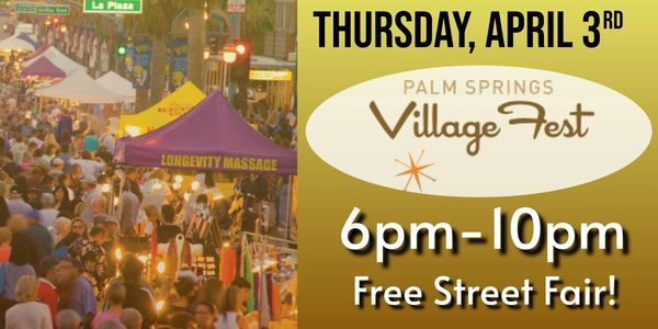 --FREE Palm Springs Village Fest Thursday evening 6pm-10pm on Palm Canyon Dr. Stroll and shop with local entertainment, art, and food vendors.